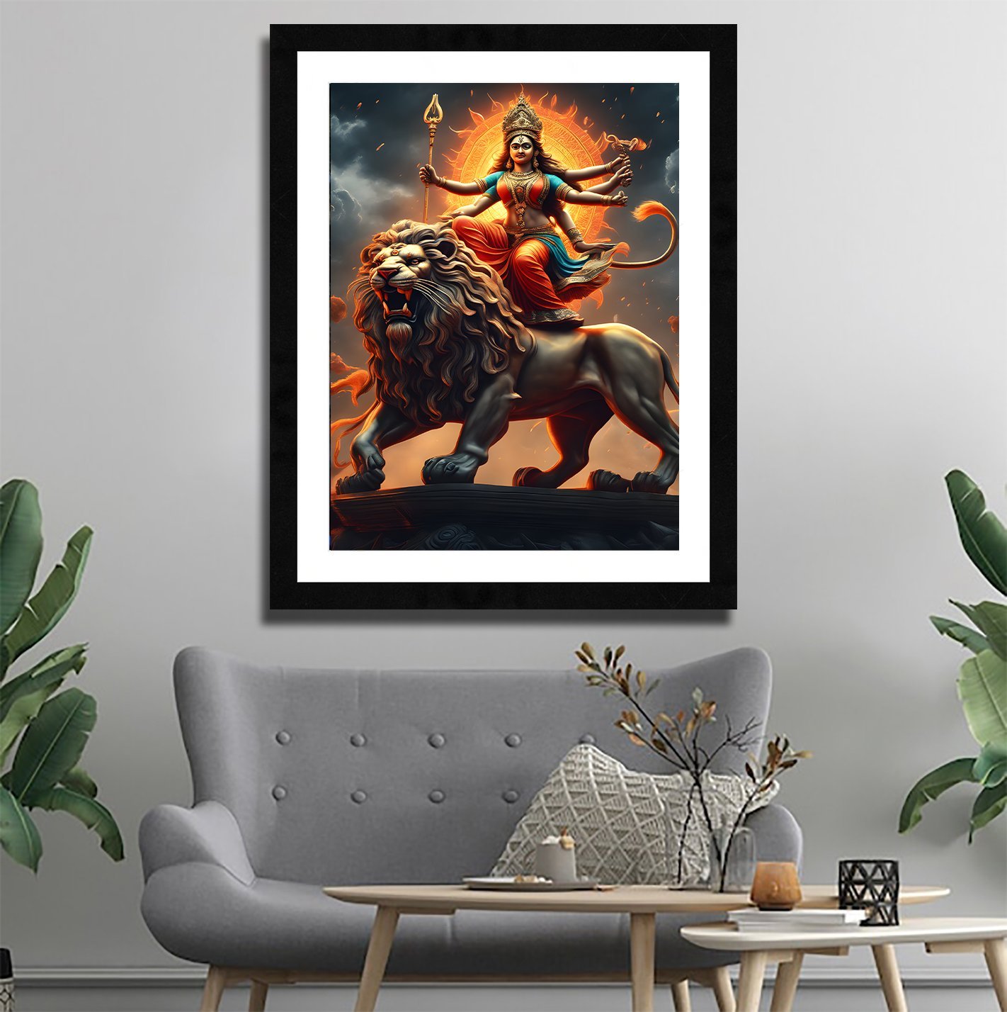 1. Beautiful Paintings of Maa Durga: These paintings typically showcase Maa Durga in all her glory, often depicted riding a lion or tiger, with multiple arms holding weapons symbolizing her power to combat evil forces.