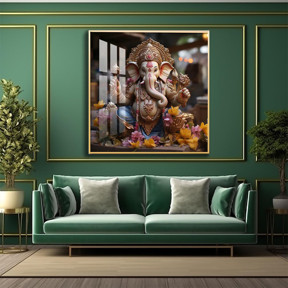 Elevate the spiritual ambiance of your living spaces with the Karya Siddh Ganesh Premium Acrylic Square Wall Art, a masterpiece from Modern Arts India. This exquisite wall art is designed to bring divine blessings and a touch of luxury to your home decor.