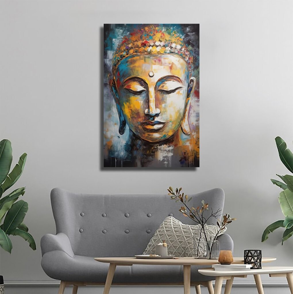 5. Buddha Canvas Painting: These paintings are created on canvas using various mediums such as acrylics, oils, or mixed media. They offer a versatile medium for artists to portray Buddha in diverse styles and interpretations, whether traditional, contemporary, or abstract.