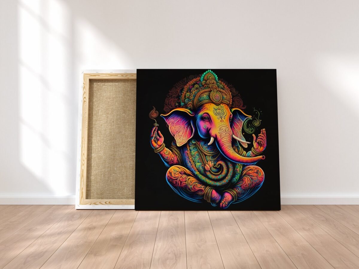 6. Ganesh Canvas Painting: This simply refers to a painting of Lord Ganesha created on canvas using various mediums like acrylics, oils, or mixed media.