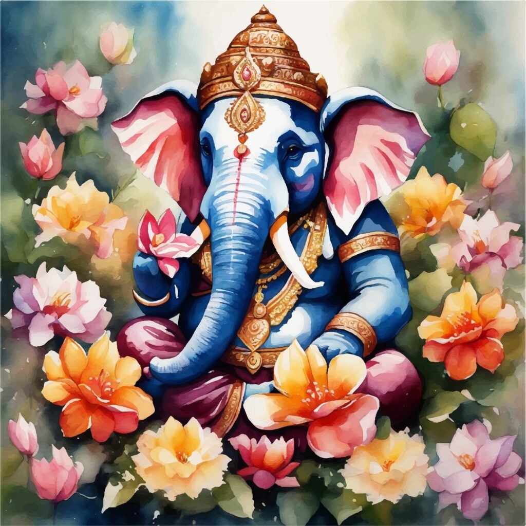 Introduction: In Hindu culture, Lord Ganesha holds a revered place as the remover of obstacles and the god of beginnings. Depicted with the head of an elephant and a portly human body, Ganesha’s imagery is rich with symbolism and meaning. This painting seeks to capture the essence of Ganesha’s divine presence and the blessings he bestows upon his devotees.