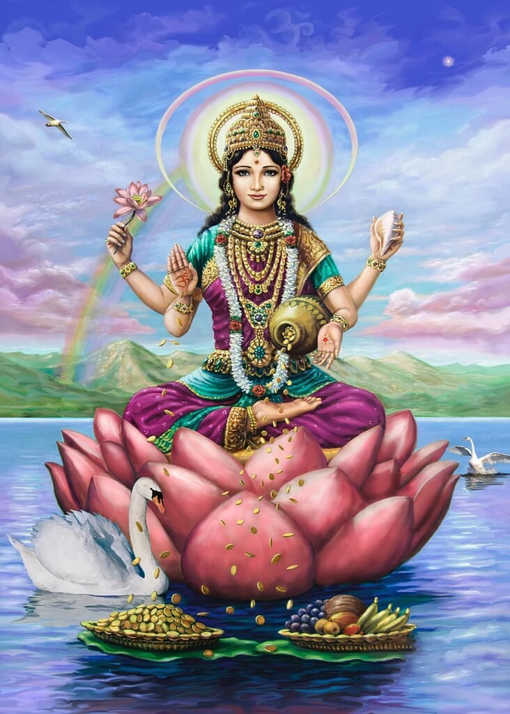 - Lakshmi Painting: This could refer to a general painting of the goddess Lakshmi, often depicted sitting on a lotus flower with gold coins flowing from her hands, symbolizing wealth and prosperity.